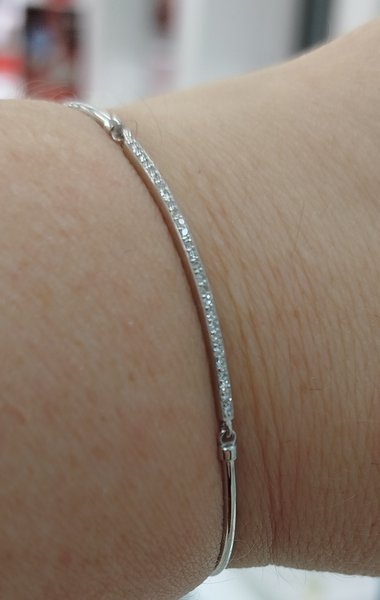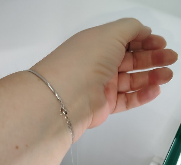 Нежный, изящный,новинка дизайна,гармоничный,хорошее качество исполнения, весь сверкает, очень хорошее родирование и полировка. Вместо цепочки желателен 4 элемент браслета , или изменить плетение цепочки и удлинить на 10 мм, замочек шпрингель изящный, но крайнее колечко для застежки можно сделать покрупнее Красивый подарок по обмену старого украшения по сертификату, чтобы не терять стоимость граммов,на новое современное. Как всегда великолепный сервис консультантов Софии и Александры, Виктории, Екатерины и мэтра ломбарда Ирины.
