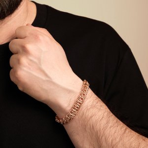 Плетение «Рамзес» — эффектная разновидность «Бисмарка». Его создают путём спаивания двух симметричных цепочек (одна закручена по часовой стрелке, другая — против). В итоге получается прочная, солидная цепь с характерным рисунком. «Рамзес» идеально подходит для мужских браслетов и массивных цепей.