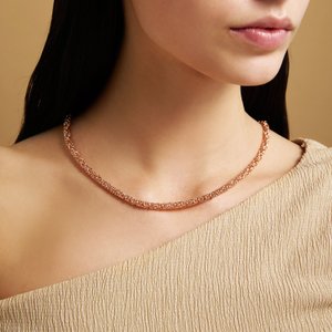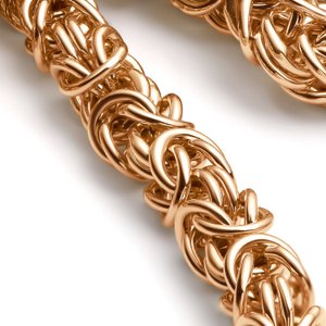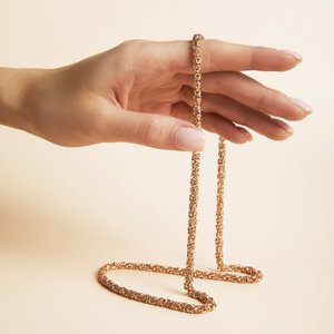 Цепь с византийским плетением — настоящий шедевр ручной работы. Многоуровневое переплетение звеньев образует сложный фантазийный, объёмный узор. Цепь смотрится солидно и богато — она самодостаточна и не требует дополнительных подвесок. Это одно из самых надежных плетений, которое не боится активной носки и сохраняет безупречный вид на протяжении многих десятилетий. «Византия» — выбор тех, кто предпочитает эксклюзивность.