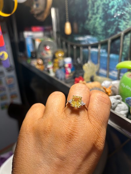 Позвольте себе выделяться! Для вас серебряное кольцо с великолепным жёлтым фианитом, который сияет, как солнце. Треугольные фианиты по бокам добавляют композиции динамики и шарма. Комплект с серьгами позволит вам выглядеть безупречно в любой ситуации.