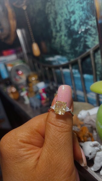 Очень красивое кольцо. Сверкает и переливается на свету. Нет Купила ещё серьги и кулон к этому кольцу